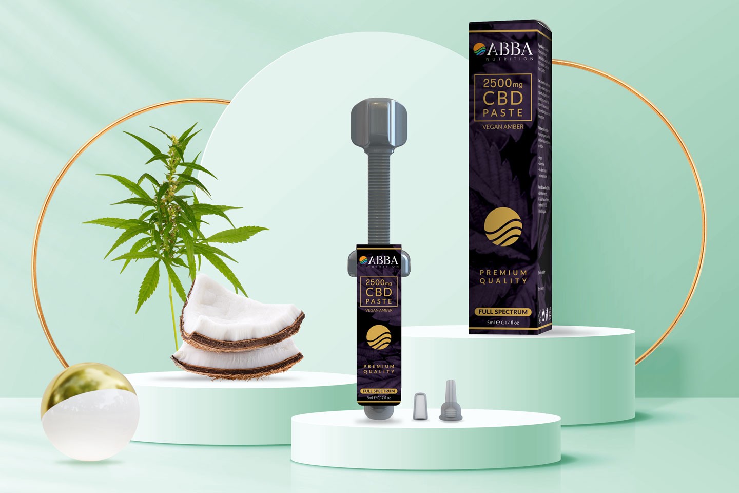 ABBA Nutrition 2500 mg CBD Premium Vegan Amber Paste contains CO2 extract of quality organic industrial hemp plants. The extract is obtained using a modern supercritical carbon dioxide extraction method that preserves a wide range of cannabinoids, terpenes and other beneficial nutrients found in hemp plant. This full spectrum CBD paste is therefore rich with cannabidiol (CBD) and a wide range of other cannabinoids and bioactive compounds creating an “entourage effect”. It comes in practical dosage syringe making it very easy to dose the right amount of CBD. Due to its rich spectrum of biologically active molecules and their mutual interaction, the paste can assist in the functioning of the endocannabinoid system for beneficial effect to your overall well-being. The higher concentration of CBD enables a rapid activation and regeneration of the endocannabinoid system.